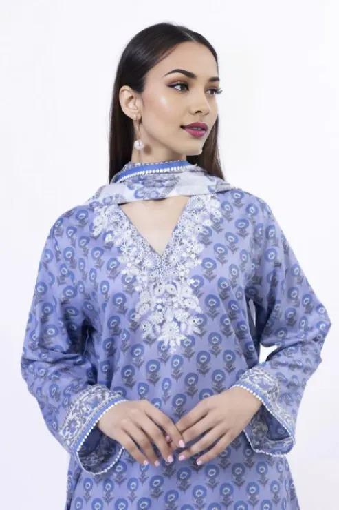 Discover timeless charm with the Azure Grace Printed Lawn 3-Piece Unstitched Suit by MalaZaar. Crafted from soft and breathable premium lawn, this ensemble offers a perfect balance of grace, comfort, and refinement. The subtle blue palette, detailed with delicate motifs and complemented by a matching printed dupatta, makes it a standout choice for summer wardrobes.