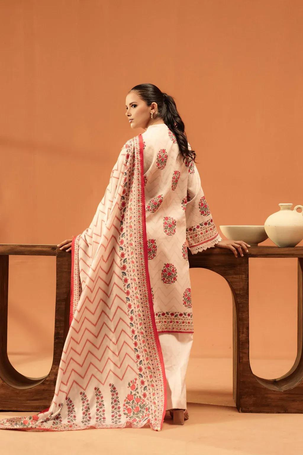 The Blush Bloom Embroidered Lawn 3-Piece Unstitched Suit from Malazaar Summer Bloom Collection redefines grace with its soft blush pink tones and intricate floral embroidery. Adorned with traditional motifs and a delicately printed dupatta, this ensemble captures the perfect harmony of sophistication and comfort for summer days.