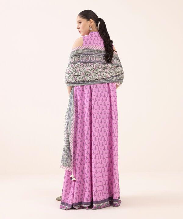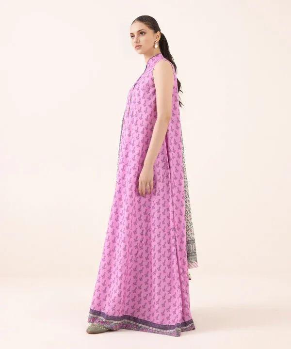 Experience the calm and grace of summer with the Lavender Summer Bloom Printed Lawn 2-Piece Dress from MalaZaar Signature Lawn Collection. This stunning outfit features a sleeveless lavender shirt adorned with elegant block-inspired prints, paired with a beautifully detailed dupatta featuring intricate borders and soft floral patterns.